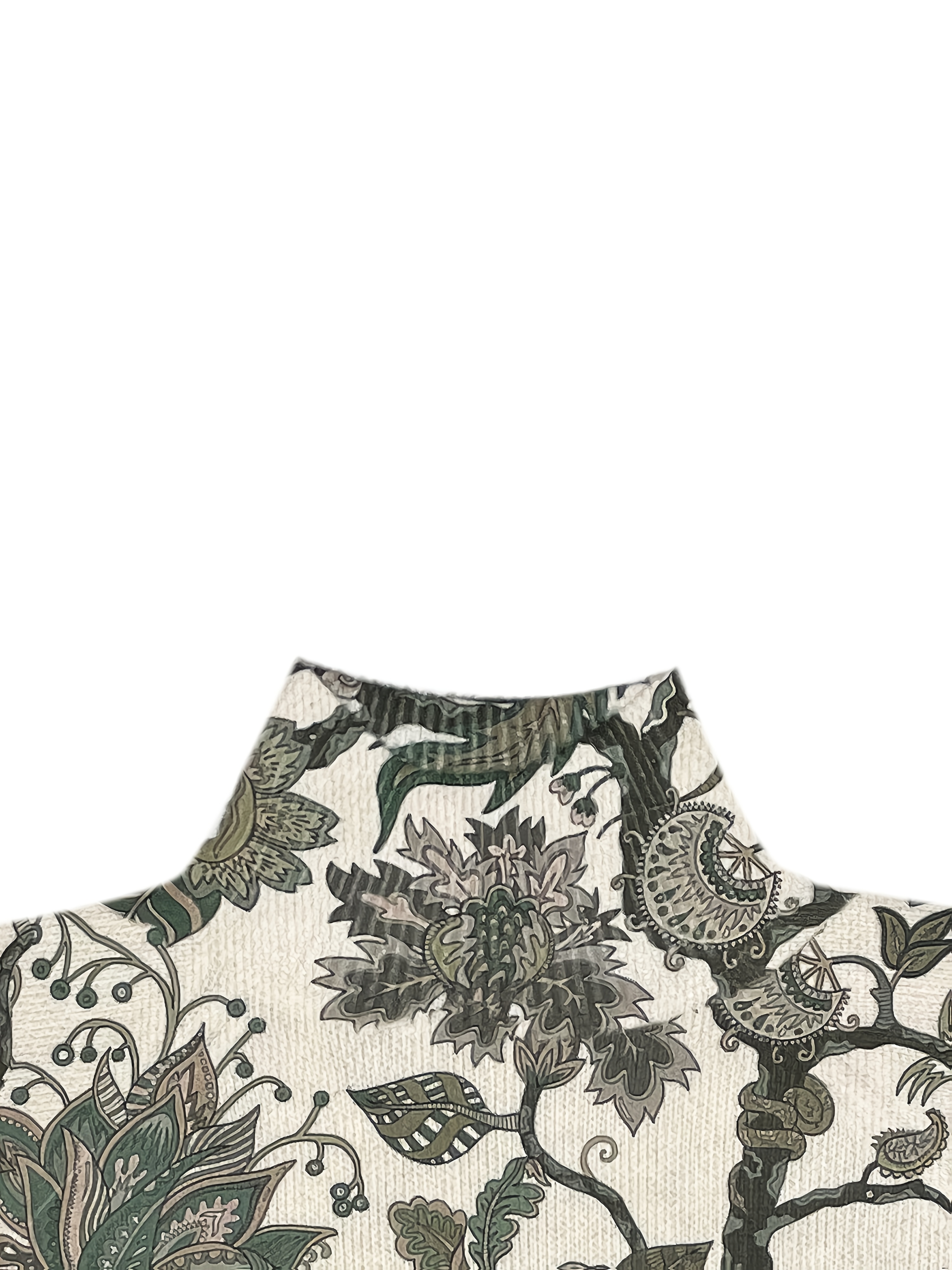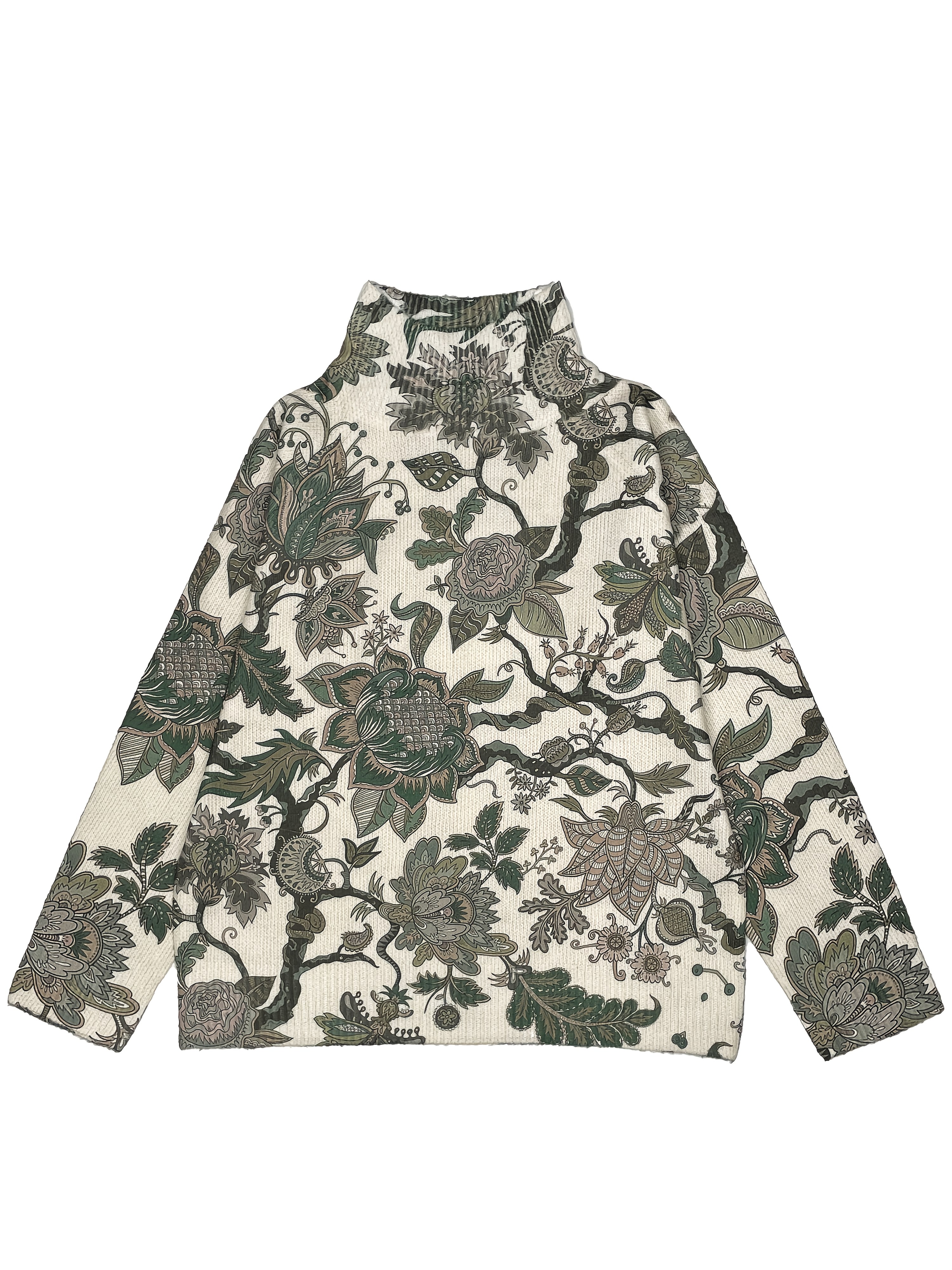 Elegant Floral Print High-Neck Sweater for Women - Chic Long Sleeve, Button-Up Front, Beige with Black & Brown Floral Design, Perfect for Fall & Winter, Autumn Winter Wear | Floral Print Top | Construction, Sweater Dress