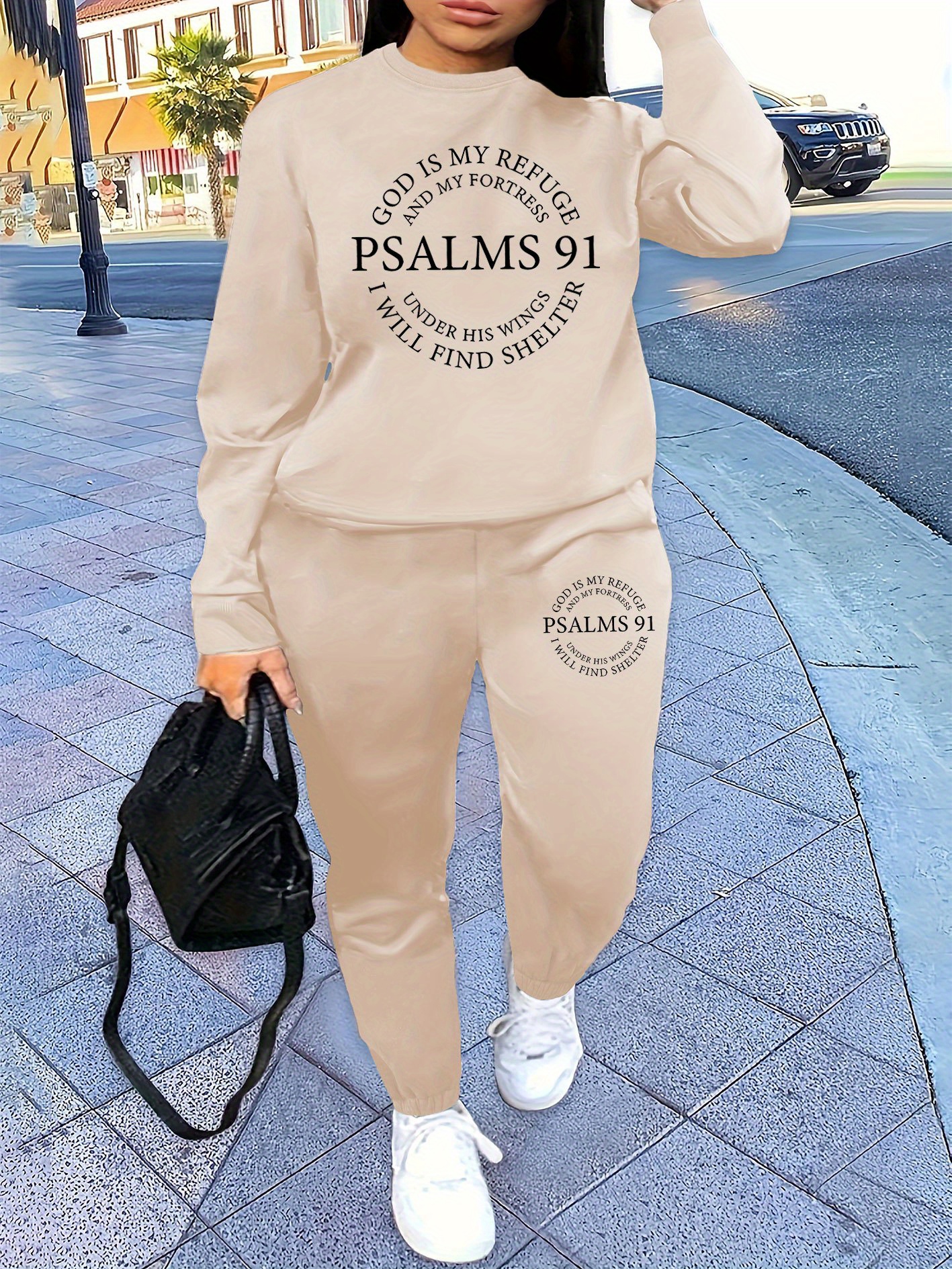 Letter Print Two Piece Set, Crew Neck Sweatshirt & Pants, Women's Clothing