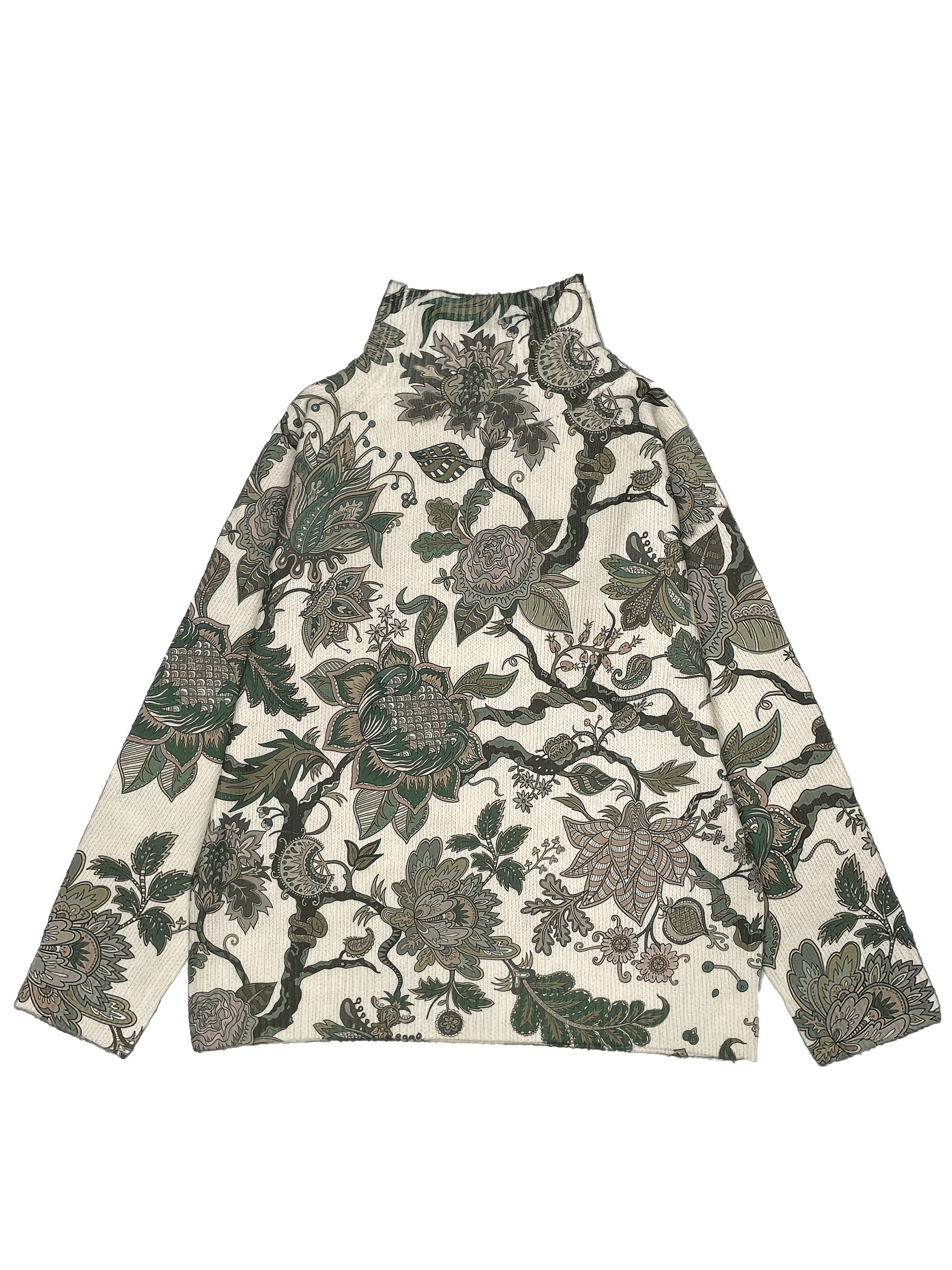 Elegant Floral Print High-Neck Sweater for Women - Chic Long Sleeve, Button-Up Front, Beige with Black & Brown Floral Design, Perfect for Fall & Winter, Autumn Winter Wear | Floral Print Top | Construction, Sweater Dress